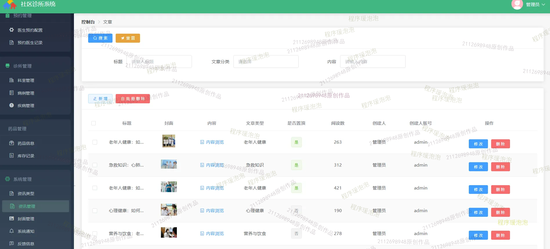 7) 健康知识管理:管理员可以添加、更新或删除健康知识相关的资讯和文章,为用户提供丰富的健康知识。