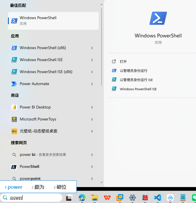 搜索powershell以管理员方式运行 一定要搜索 ,其他的命令方式在我电脑上都不行