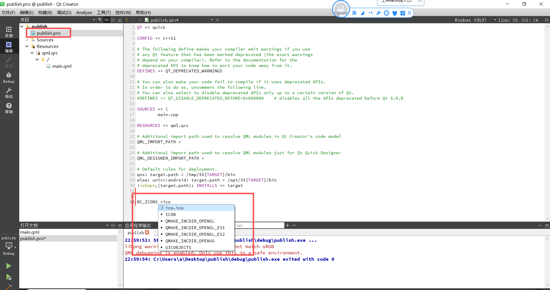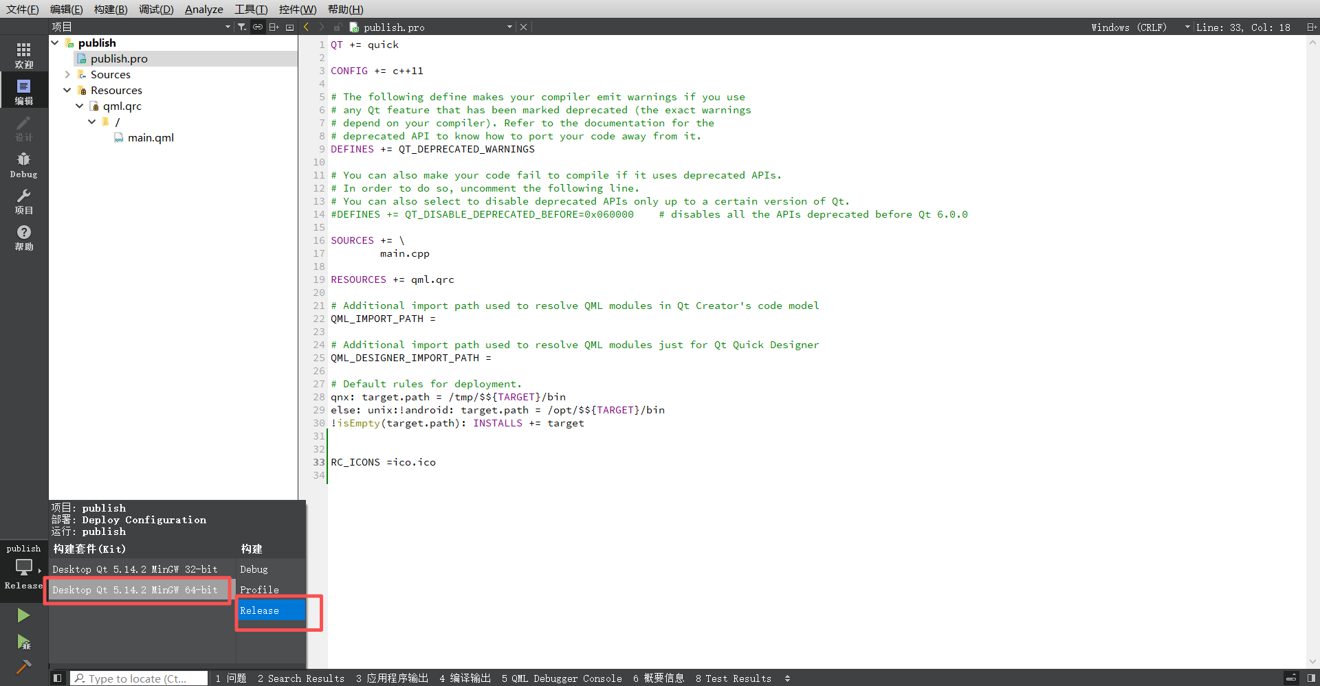 本章节主要内容是:实现qml程序的发布,在程序编译后.exe是无法打开的,所以需要进行打包发布实现直接可用。