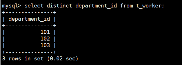 (2)查询所有职工所属部门的部门号,不显示重复的部门号;