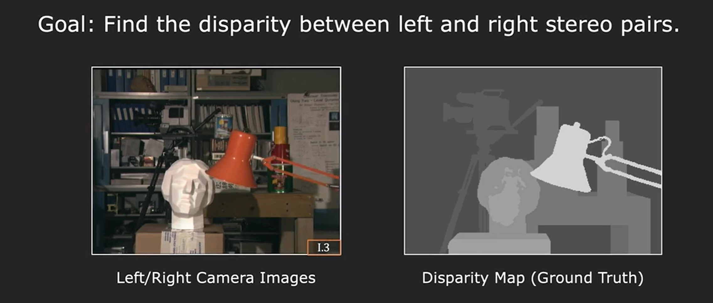 对于三角测量,我们可以手动指定对应点。但对于计算机视觉来说,我们的目标是计算出图像中成千上万个像素点的深度,形成一张稠密的深度图。这就引出了一个核心难题:立体匹配 (Stereo Matching)。