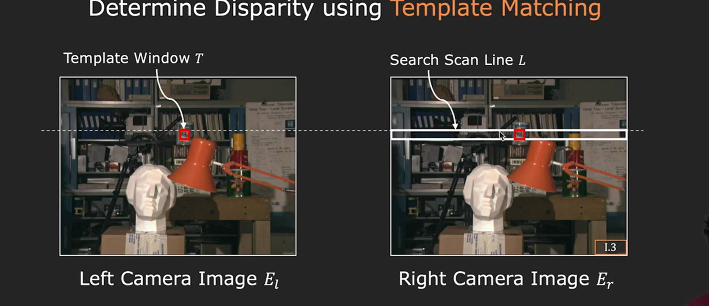 上。 - 这样一来,匹配搜索的维度就从二维(在倾斜的线上搜索)降低到了一维(在单行像素内搜索)。算法只需要在右图的同一行从左到右扫描,寻找最佳匹配点即可。