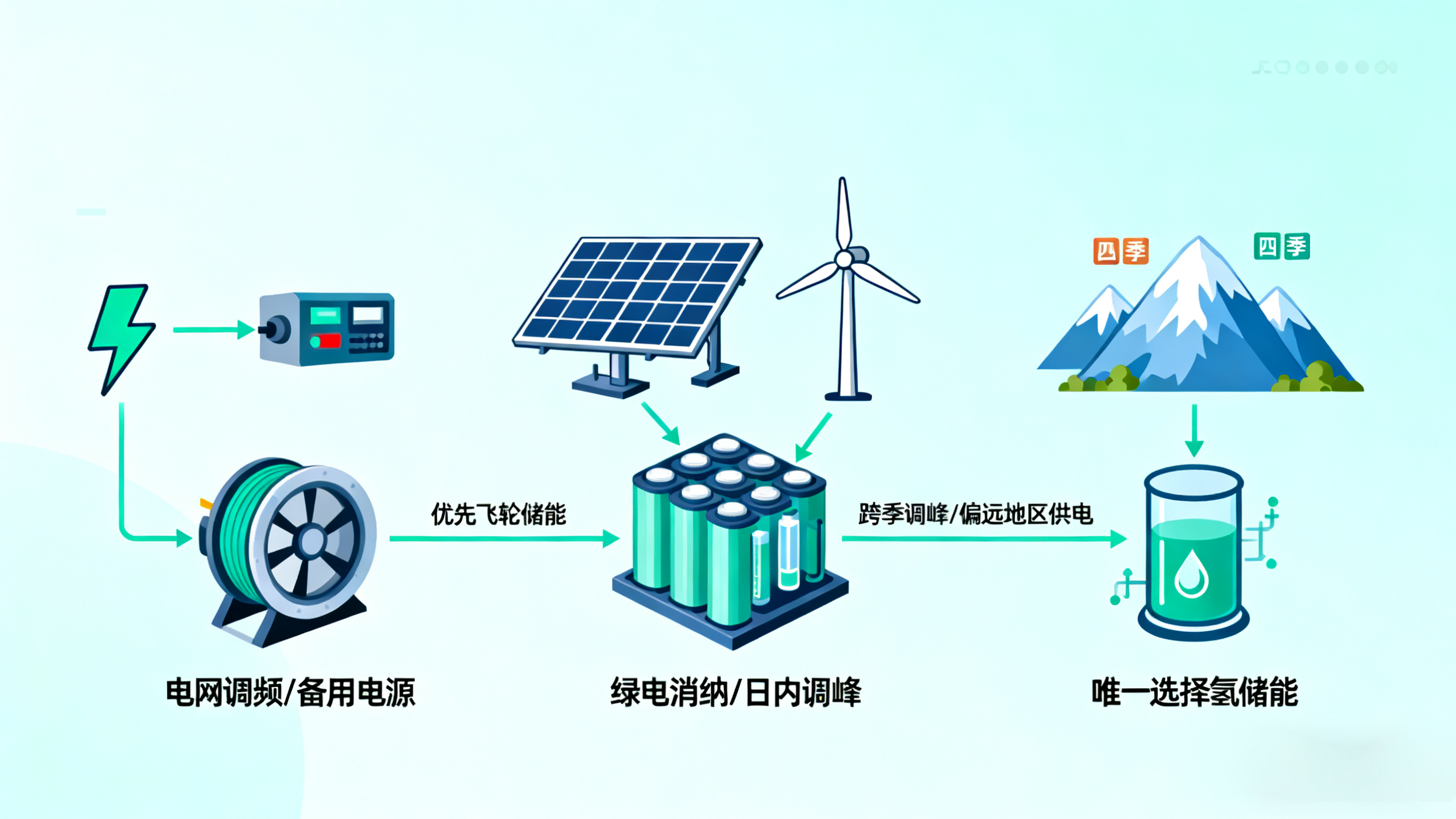 - 若需求为 “时长>100 小时 + 跨区域 / 跨季”:选氢储能(如跨季供暖、偏远地区供电)。