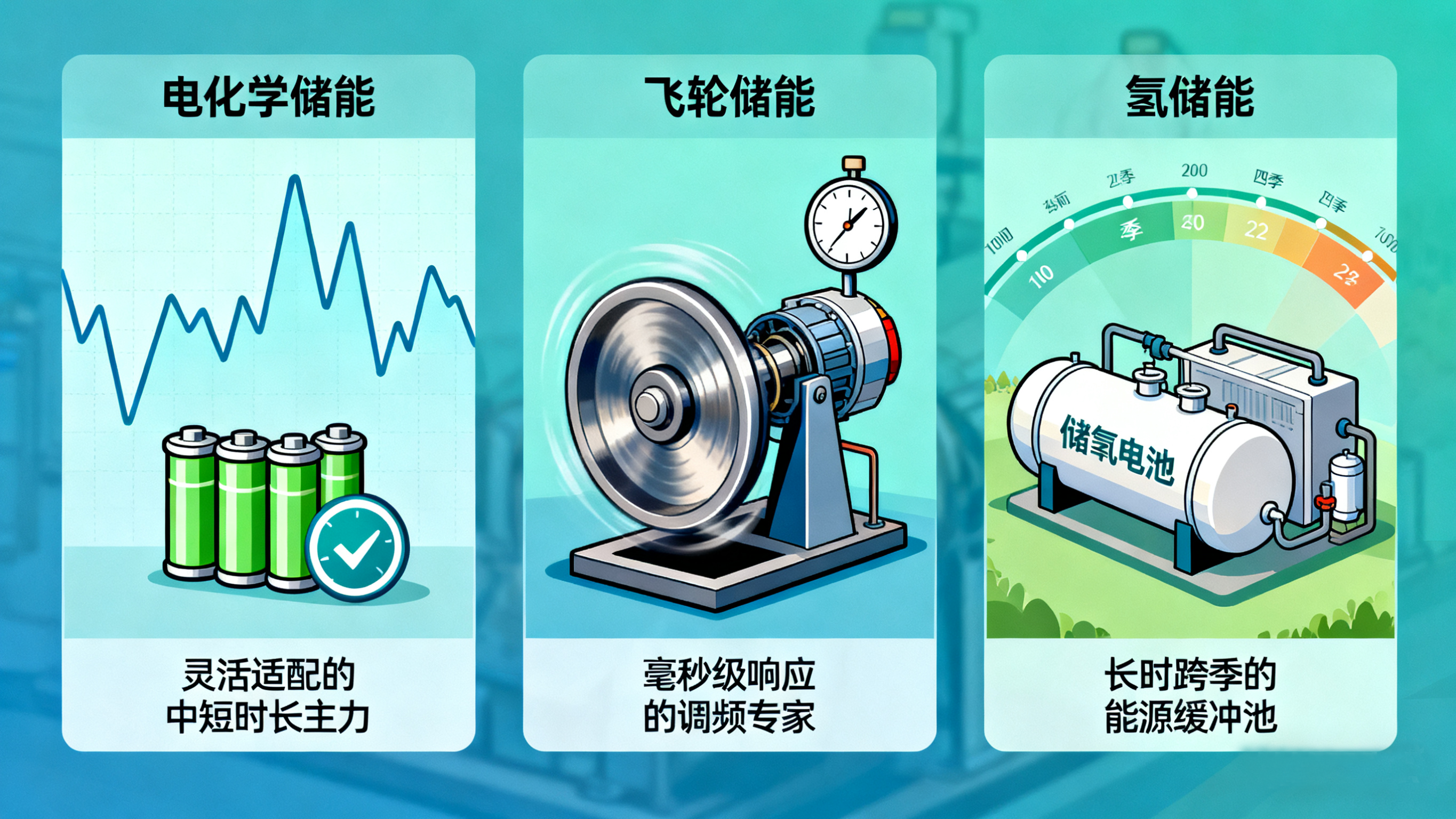 在构建现代能源体系的过程中,储能技术已成为实现能源高效利用的关键环节。面对不同的应用场景和需求,电化学储能、飞轮储能和氢储能这三种主流技术路线展现出各自的特色优势。本文将深入分析其技术特点,为您的储能选择提供清晰指南。