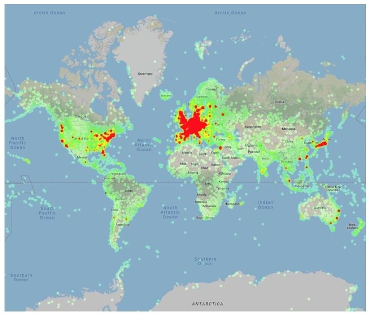 Figure 2: Heatmap of the places in the Google Landmarks Dataset v2.