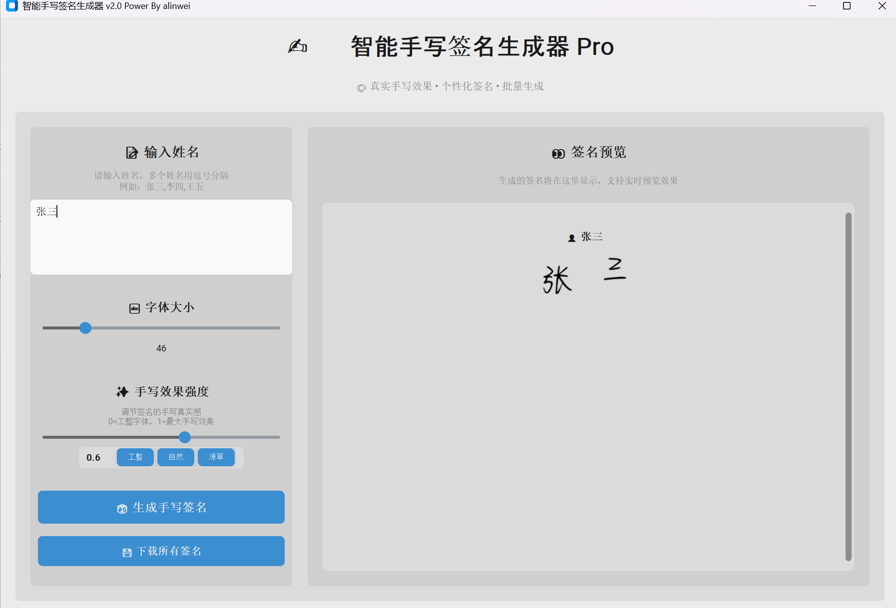 - 🖋️ 一键智能生成:姓名输入,签名即现