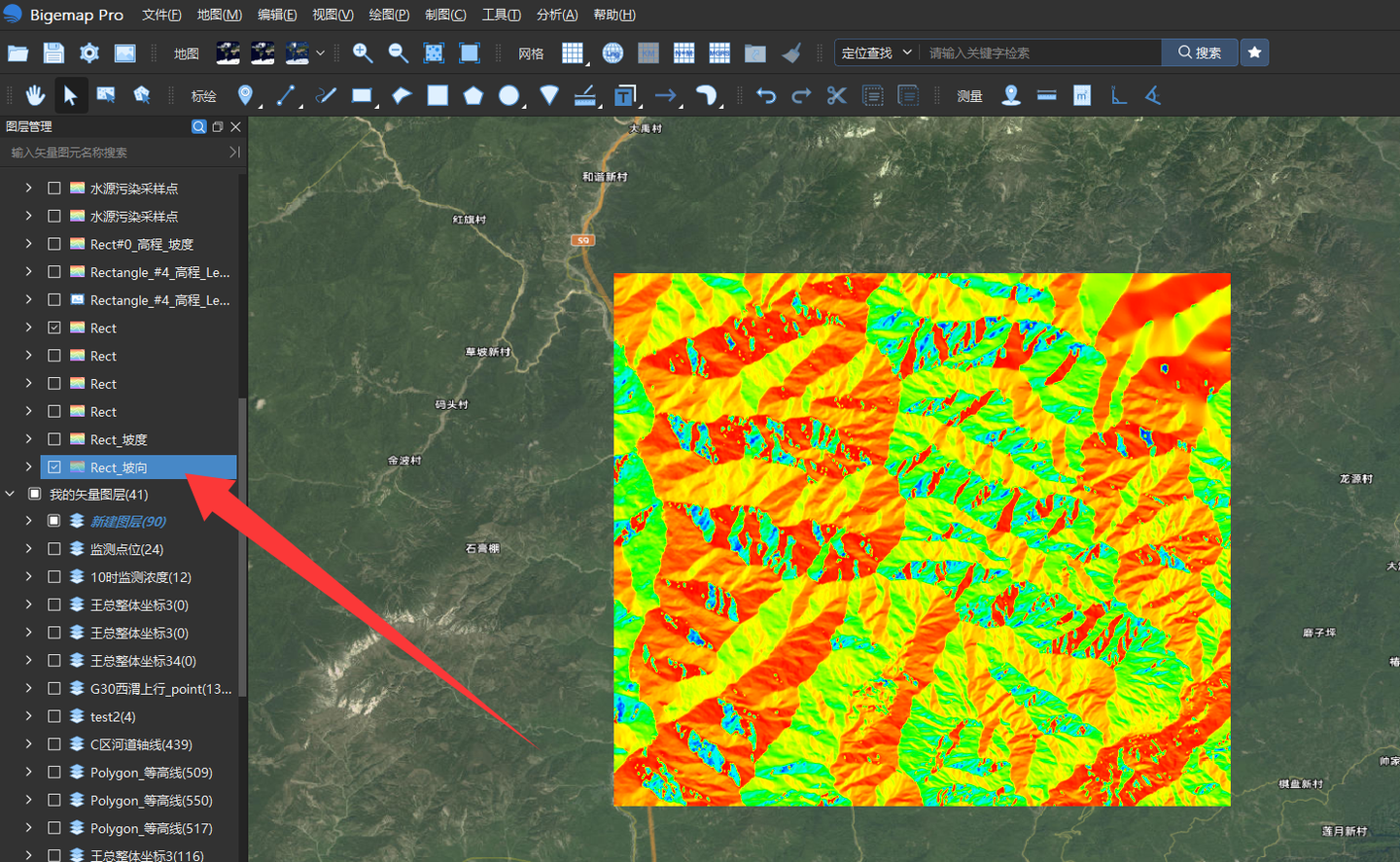 运行之后会生成一个坡向文件,如下图