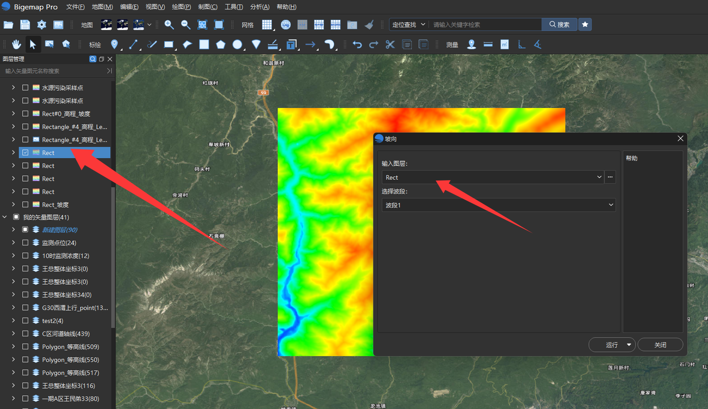 选择对应的高程图层,然后点运行