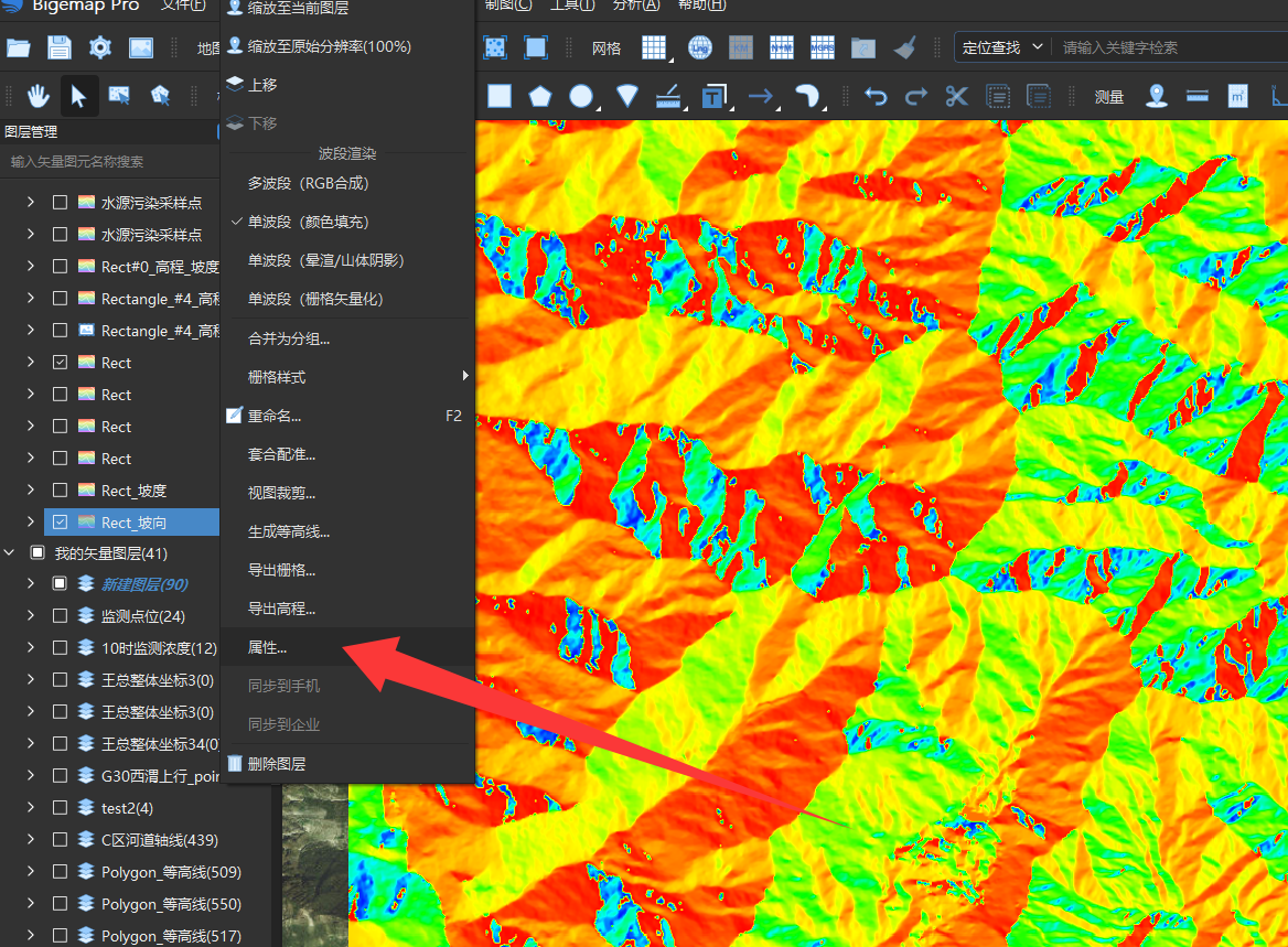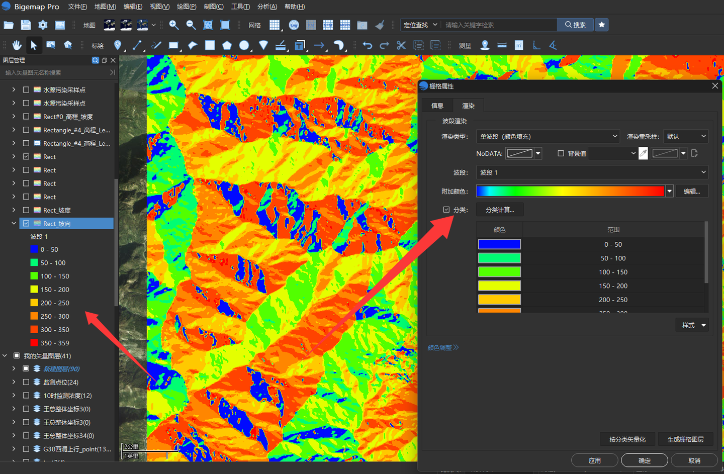 点开坡向文件的属性里面,选择渲染