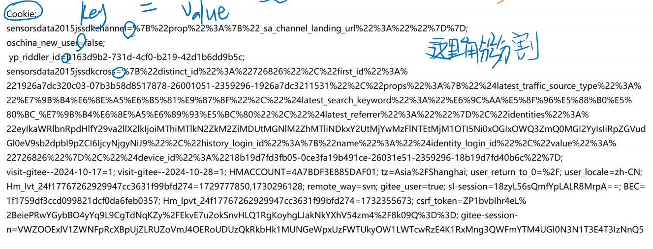 URL的query string 由程序员自定义 header部分也是键值对 由PFC标准规定 header中Cookie里存的数据也是键值对 由程序员自定义 body是json格式,仍然是键值对 由程序员自定义 这些键值对可以让程序员结合实际情况,基于http,实现更多个性化的功能需求