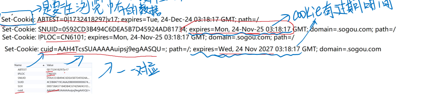 - Set-Cookie:xxxx 往浏览器存数据,xxxx中会包含Cookie的过期时间