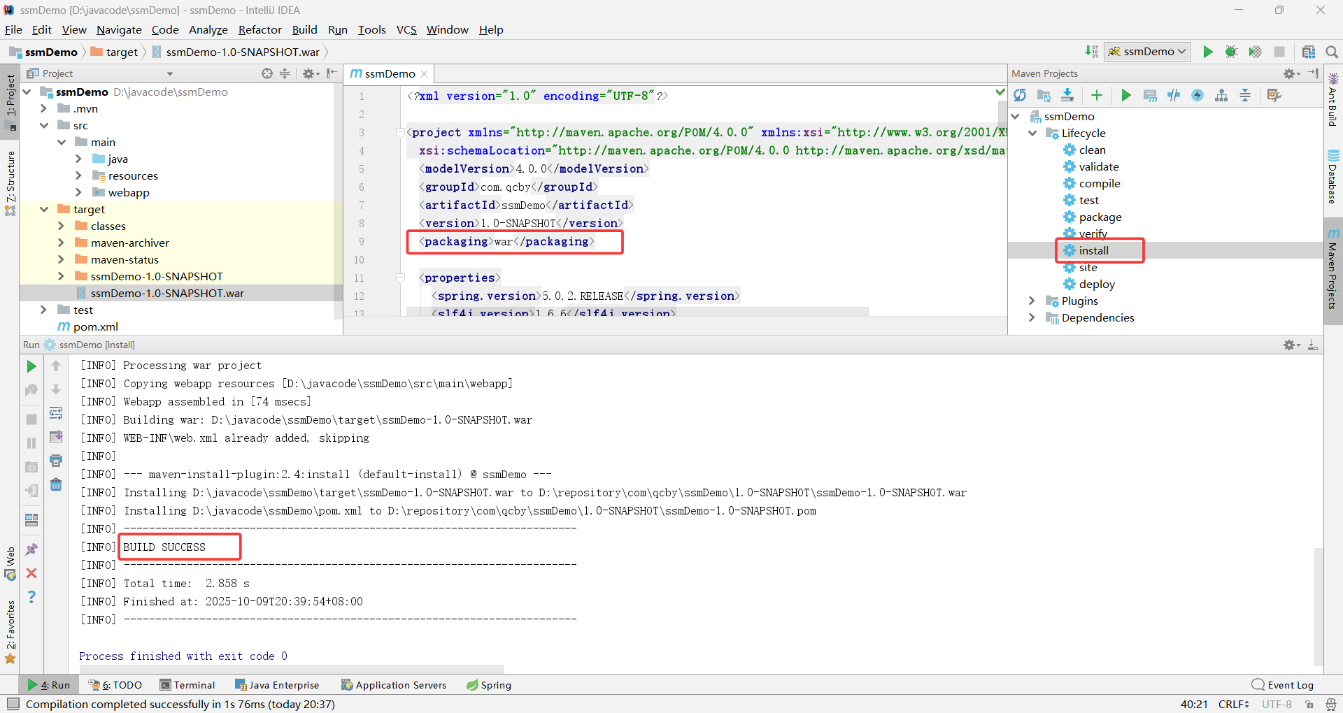 等待控制台输出「BUILD SUCCESS」,表示打包完成。此时会在项目根目录的target