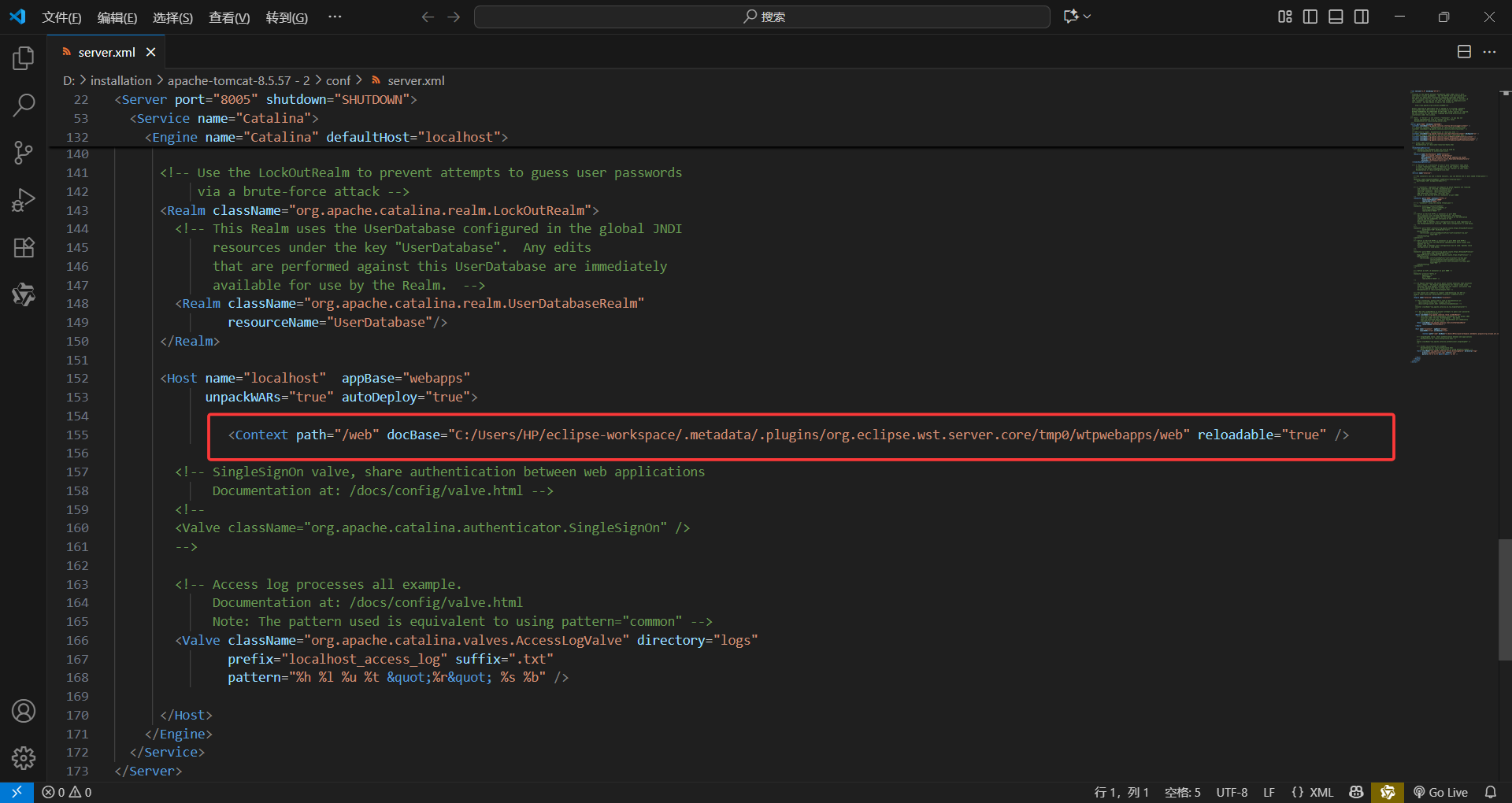 目录,通过修改 Tomcat 核心配置文件server.xml