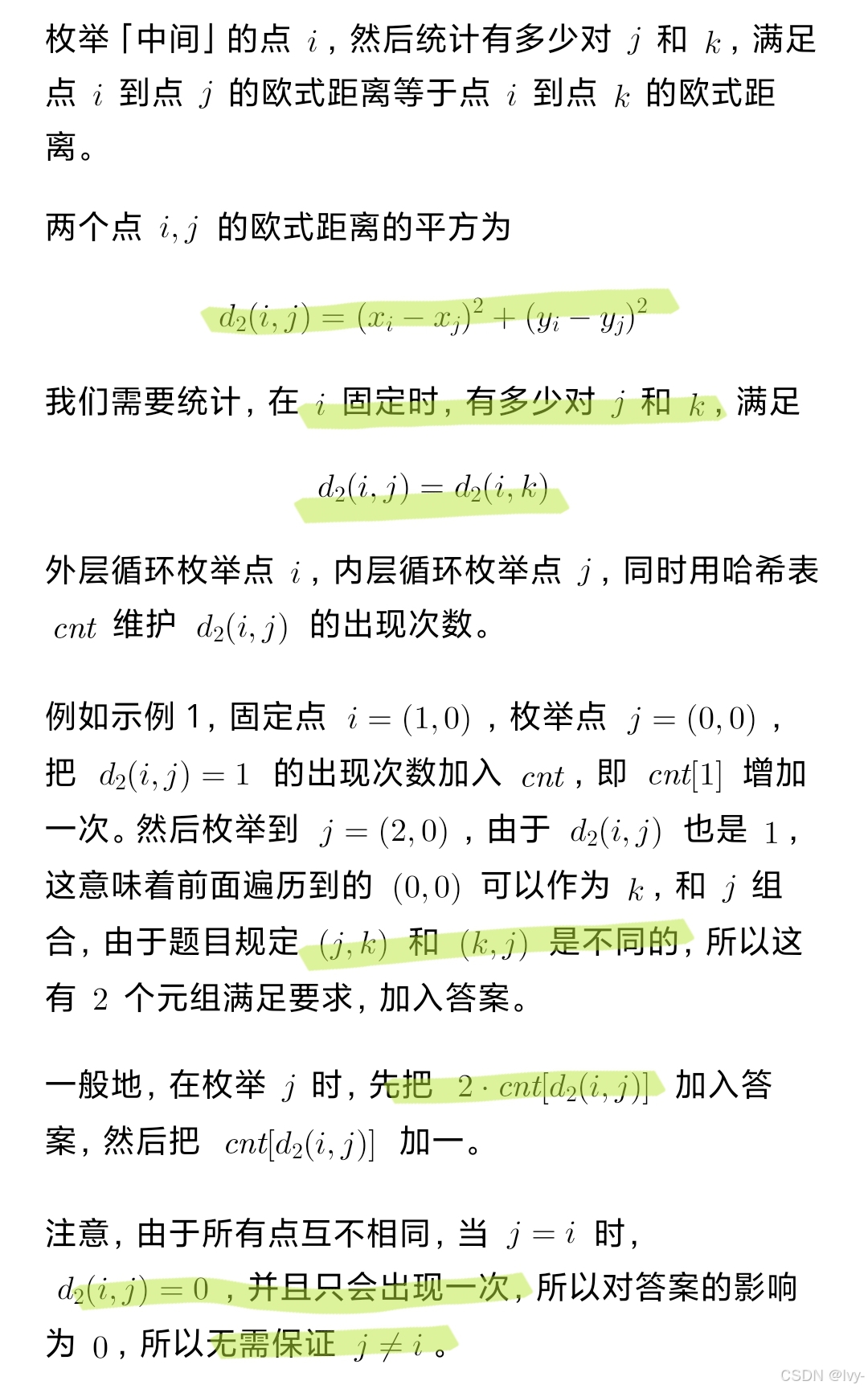 int numberOfBoomerangs(vector<vector<int>>& points) {