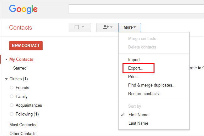 - 接下来,登录你刚刚使用的同一个谷歌账户。- 点击右上角的“谷歌”图标,选择“联系人”>“更多”>“导出”>选择“转到旧版本”>“更多”>“导出”。