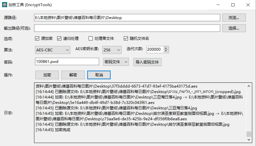 支持随机文件加密,支持密码输入,和加密的密码文件,采用最新算法,高性能加密,M2固态速度下测试如下: