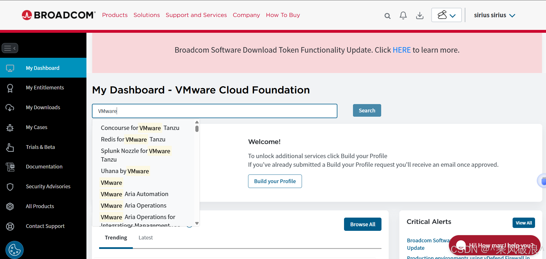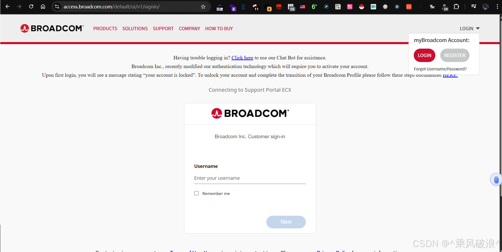 打开网址 https://access.broadcom.com/default/ui/v1/signin/ 注册账号之后登录