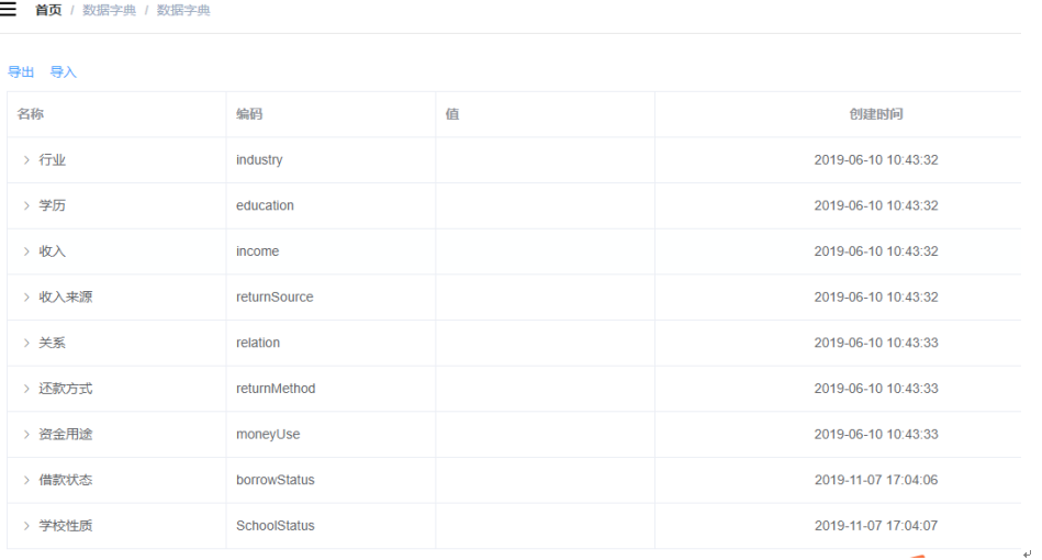 何为数据字典?数据字典就是管理系统常用的分类数据或者一些固定数据,例如:省市区三级联动数据、民族数据、行业数据、学历数据等,由于该系统大量使用这种数据,所以我们要做一个数据管理方便管理系统数据,一般系统基本都会做数据管理。