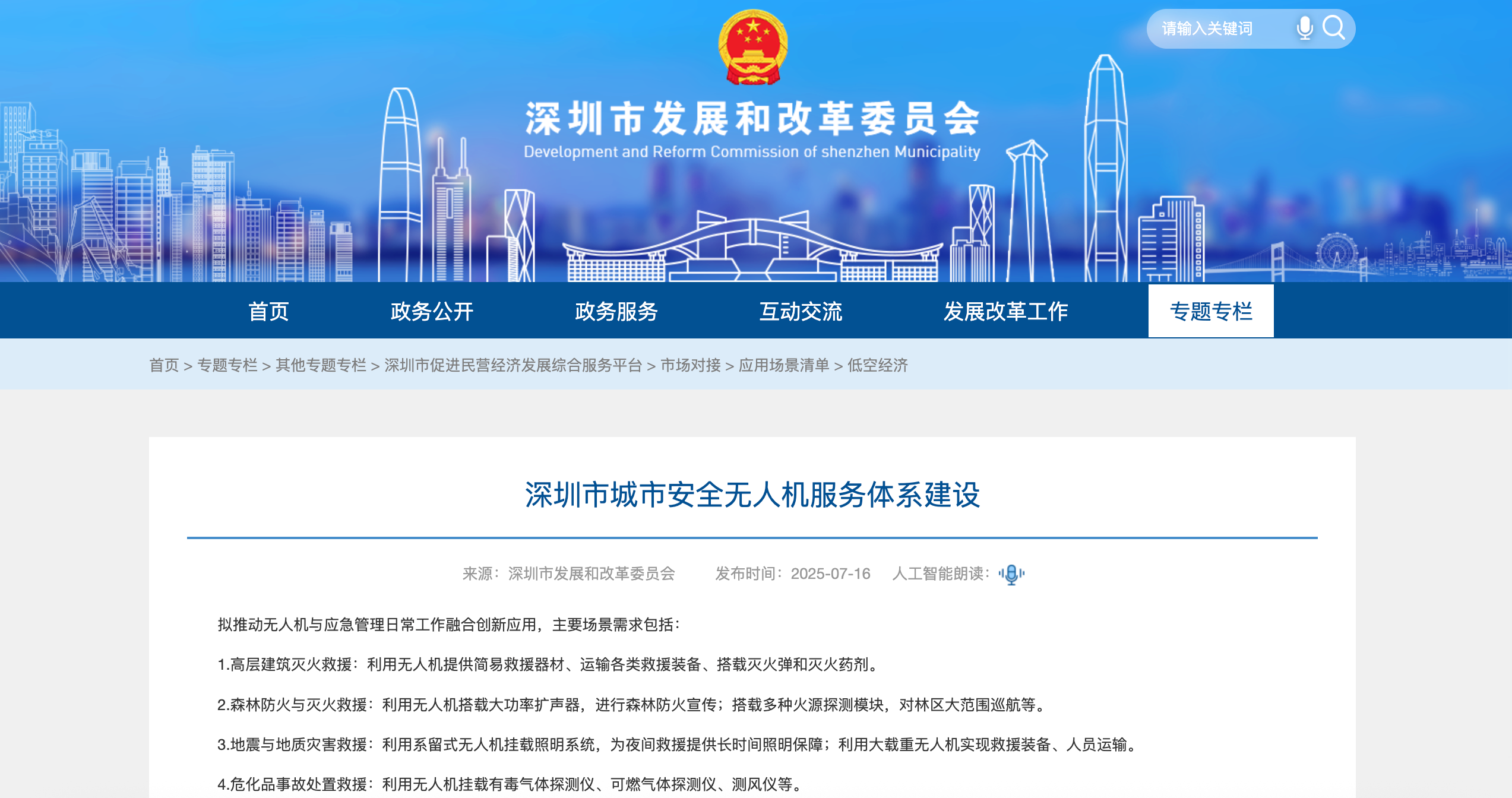深圳通过布局小型停机坪,构建起侦查和救援一体化低空网络:火情发生时,侦查无人机率先起飞,同步回传现场数据;遇超高层灭火需求,救援无人机随即出动,解决传统水炮无法抵达高空的难题。这一实例不仅体现了低空经济在应急救援领域的成熟应用,更预示着前景互联平台和大疆无人机模式可根据需求拓展更多功能,同时为不同场景提供定制化解决方案。