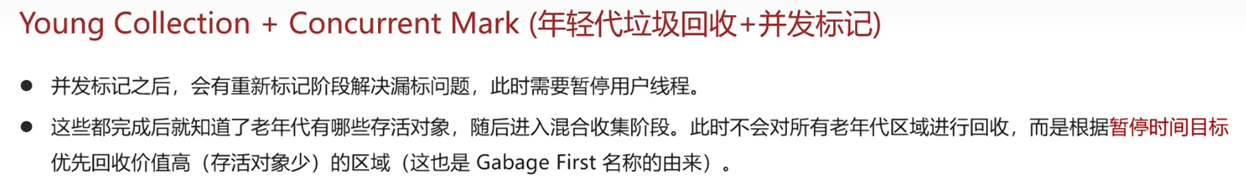 ● 分成三个阶段:新生代回收(stw)、并发标记(重新标记stw)、混合收集