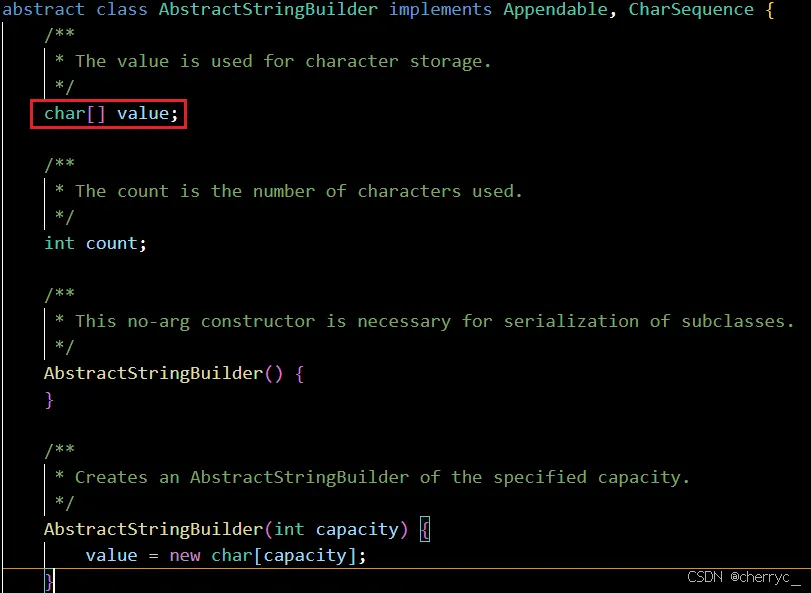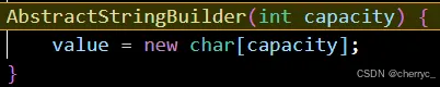 - 字符序列存放在父类AbstractStringBuilder的char[] value中,因此存放在堆中