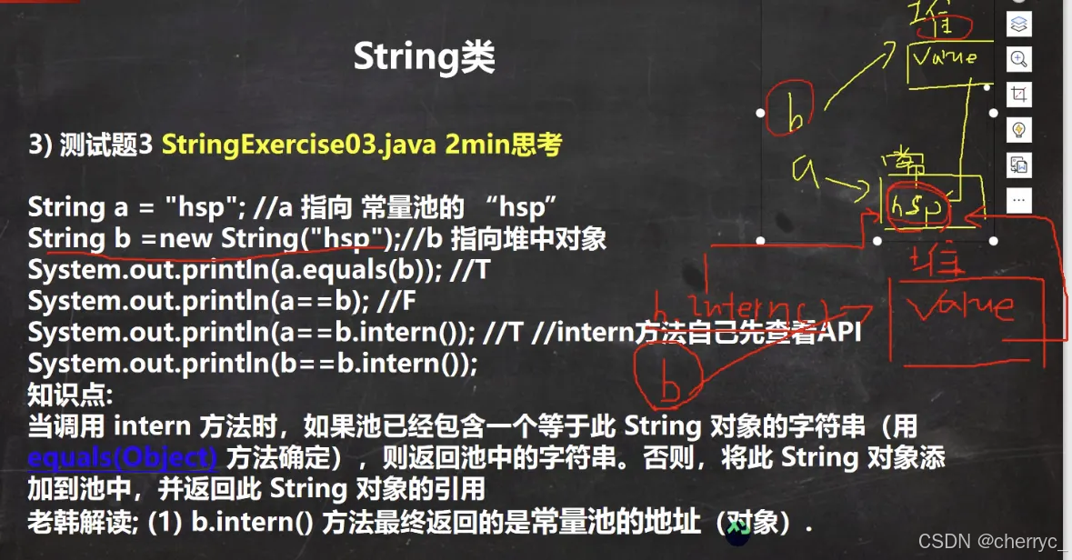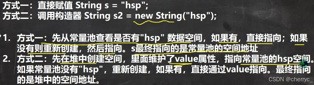 - String复用率高,指的是不同的对象都指向常量池的同一个地址