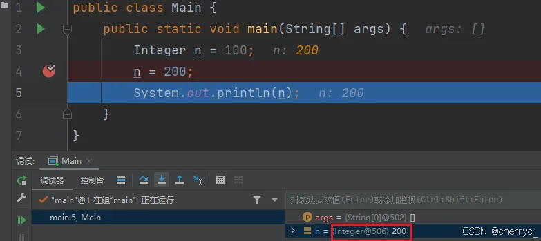 - 改变的是name变量的引用(从指向0x100改为指向0x200)