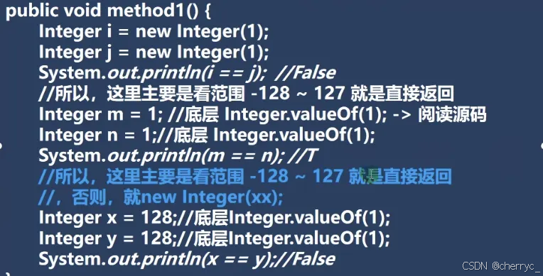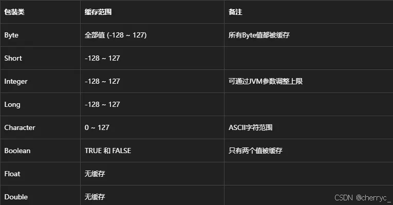 方法(或自动装箱)创建这些范围内的对象时,会返回缓存中的同一对象引用,而不是每次都创建新对象。