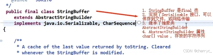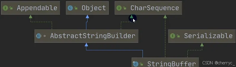 - 一个可变的字符序列,提供一个与StringBuffer兼容的API,但不保证同步,不保证线程安全(没有synchronized修饰)。该类被设计用作StringBuffer的一个简易替换,用在字符串缓冲区被单个线程使用的时候。如果可能,建议优先采用该类,因为在大多数实现中,它比StringBuffer快(在单线程环境下性能更高)
