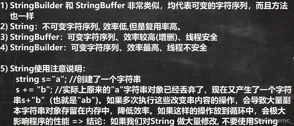 String类用于表示和操作字符串,每次更新都需要重新开辟空间,效率较低。