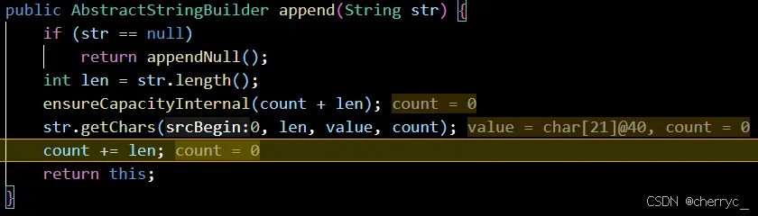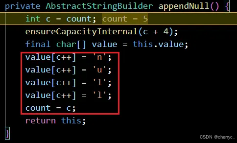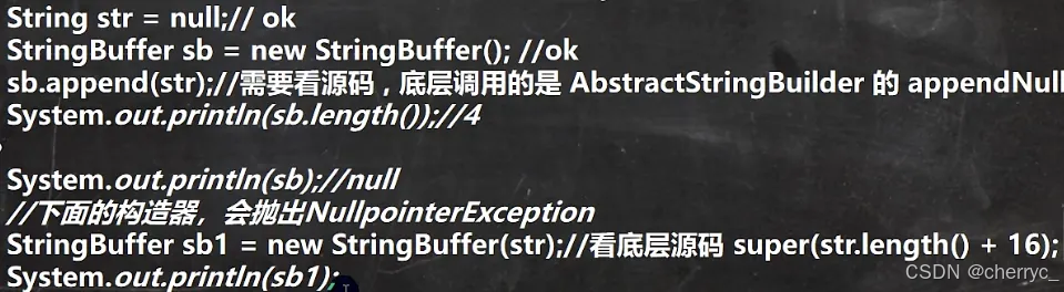 如果append(null),会把null转换为字符串”null”,并且长度+4