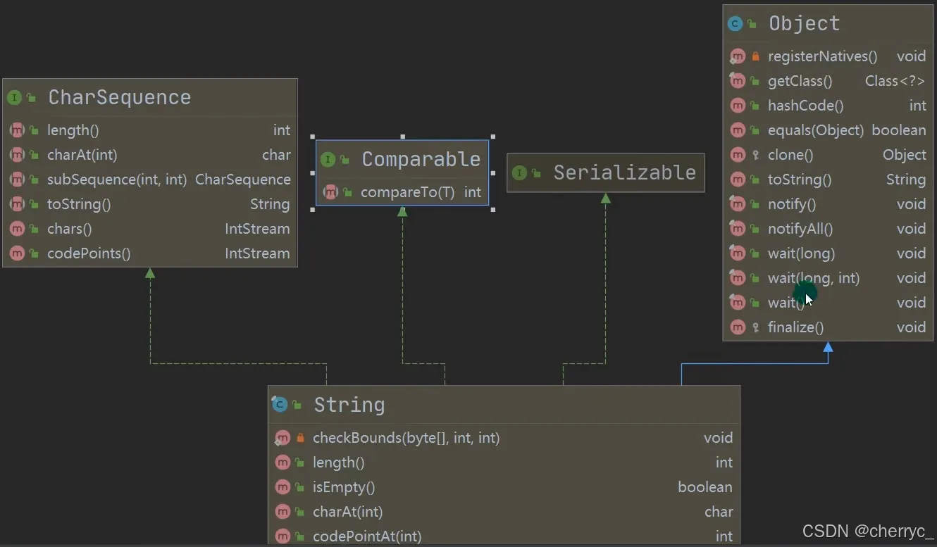 - 实现Comparable接口:代表String对象可以自然排序(相互比较)