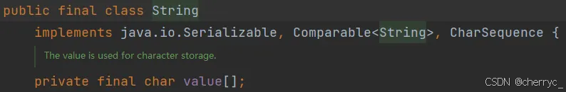 - 实现Serializable接口:代表String对象可以串行化,即可以在网络传输