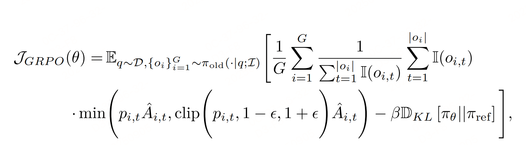 前面提到,pipline会首先将问题和下采样图像输入到 VLM 中。如果信息不足以回答当前问题,模型将自主请求更高分辨率的图像并生成新的响应。这一过程本质上是一种多轮交互。因此,将原始的 GRPO扩展为多轮 GRPO: