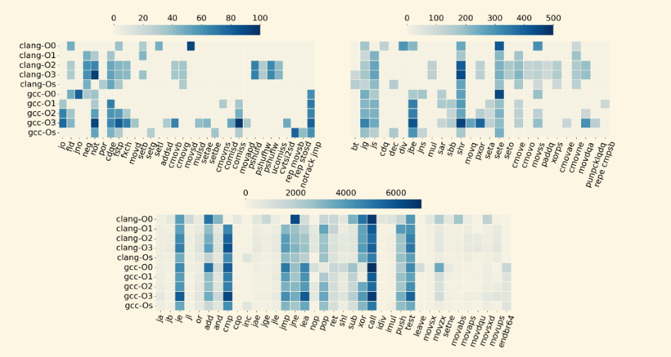 编译器和优化级别。众所周知,不同的编译器会为相同的源代码生成不同的汇编代码和二进制文件。这种差异是由多个因素引起的,包括编译器在不同编译阶段使用的底层优化和内部成本模型。此外,即使是由相同编译器从相同源代码生成的二进制文件,也可能存在显著差异,这取决于代码生成过程中使用的优化级别。这个观察结果促使了恶意软件多样化中的关键技术之一:使用不同的优化序列重新编译。因此,二进制差异比较技术能够抵抗编译器优化的能力是非常值得追求的,Ren等人表示:“由于编译器优化是导致二进制代码在语法上差异的最常见来源,测试其抵抗不同编译器优化设置所引起的变化,已成为大多数二进制差异比较方法的标准评估步骤。”