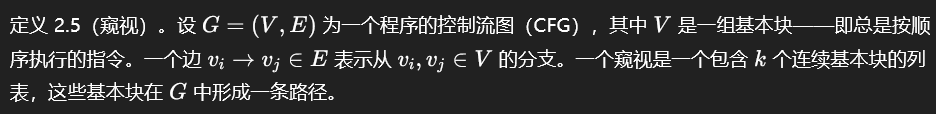 为了实现这三个目标,我们的方法基于基本块的序列,称之为窥视,其定义如下所示: