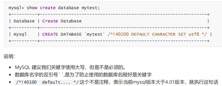 create databases [IF NOT EXISTS] 数据库名称 [设置字符集和检验规则(可省略,采用默认的---在my.cnf的配置文件中设定的)]