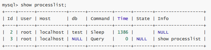 可以告诉我们当前有哪些用户连接到我们的MySQL,如果查出某个用户不是你正常登陆的,很有可能你的数据库被人入侵了。以后大家发现自己数据库比较慢时,可以用这个指令来查看数据库连接情况。