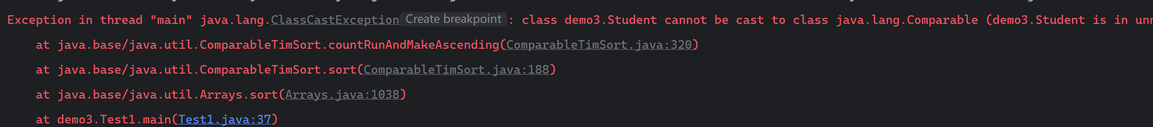 class demo3.Student cannot be cast to class java.lang.Comparable