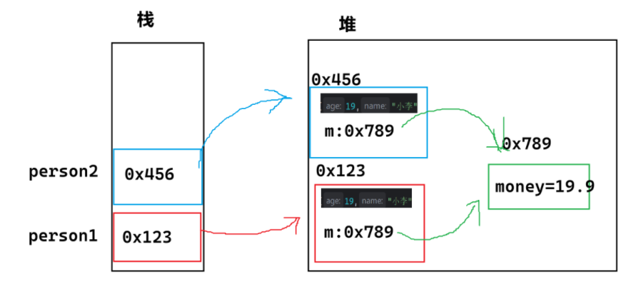 此时的 Person2 的 m 对象是另外一个独立的对象,与 Person 引用的 m 不是同一个