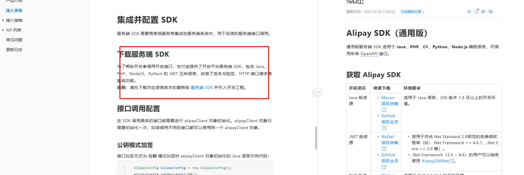 在官网上下载服务端SDK