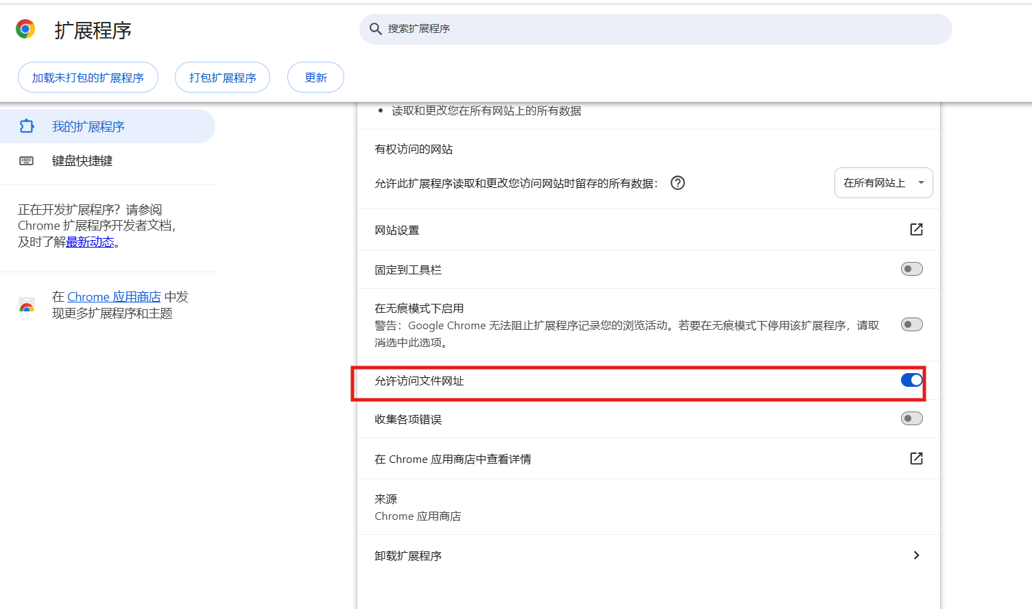 (2)极简插件:下载 -> 开发者模式 -> 拖拽安装 -> 插件详情允许访问文件