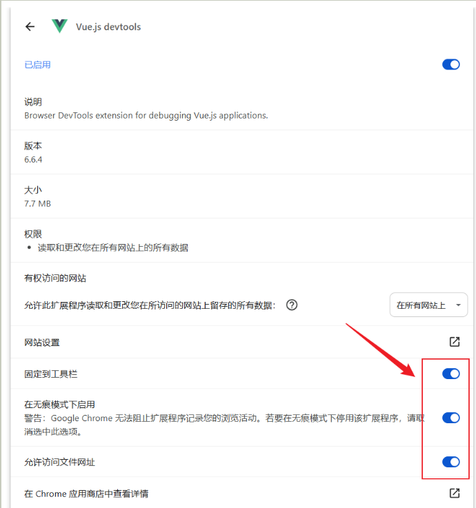 (4)关于谷歌浏览器安装了vue-devtools插件但在浏览器控制台不显示vue标签的解决方案