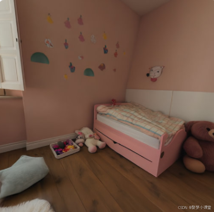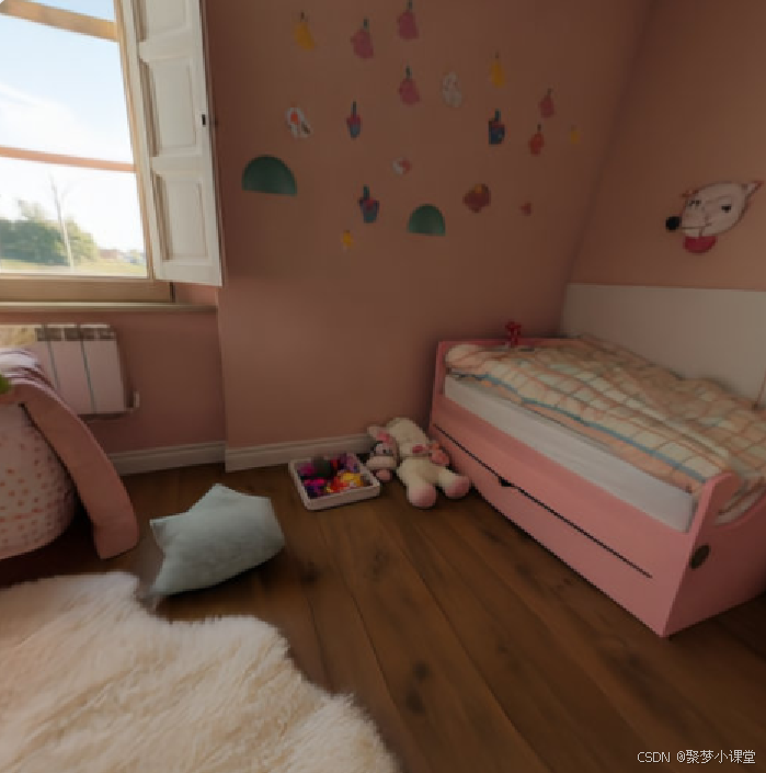 以下是基于官网提供的链接,官方固定的几个场景之一,把目标内容移出镜头再移回来之后的场景,可以看到,画面的细节还是有一些变化的,比如说第一组的地板花纹,毛绒地毯的细节,第二组到时保持的还蛮好。
