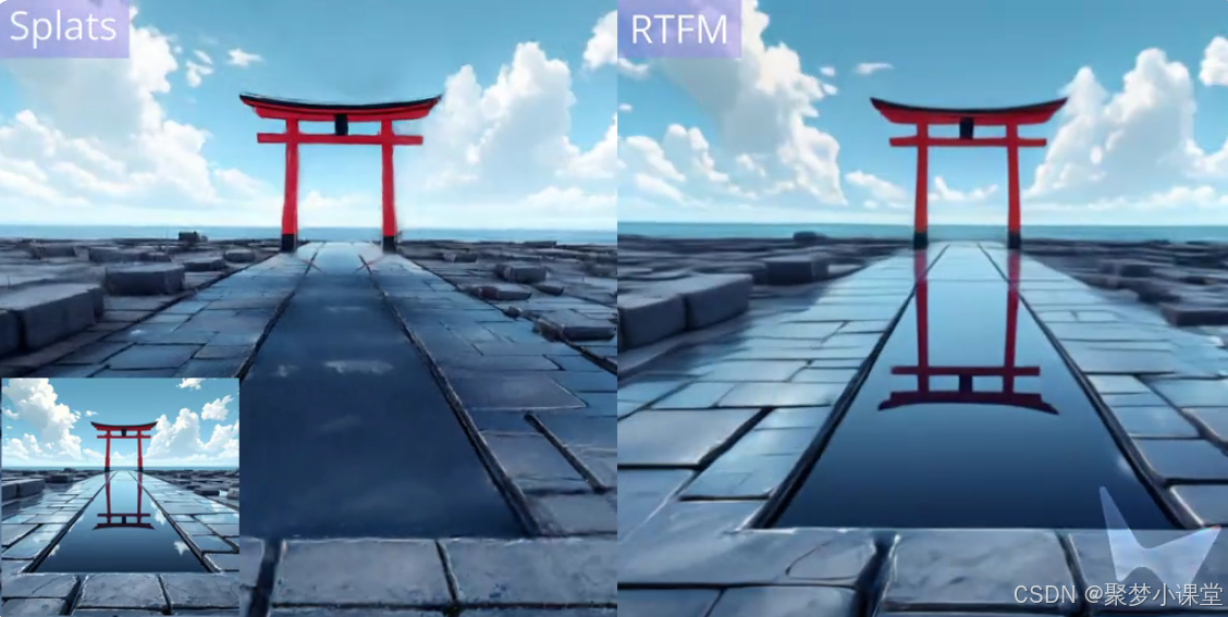如果文章介绍的视频录屏确实如此实现,那么 RTFM 对‘世界模型’的探索更显纯粹 —— 无需显式定义‘物体对象’,却能通过帧序列的空间关联,间接呈现世界中物体的坐标关系,还能复现水的反射折射等物理规律的视觉表现(虽暂未看到对动态物体的建模),基本可视为世界模型的雏形。只是当前对 H100 算力的依赖、场景精度的保真度,仍有较大提升空间。