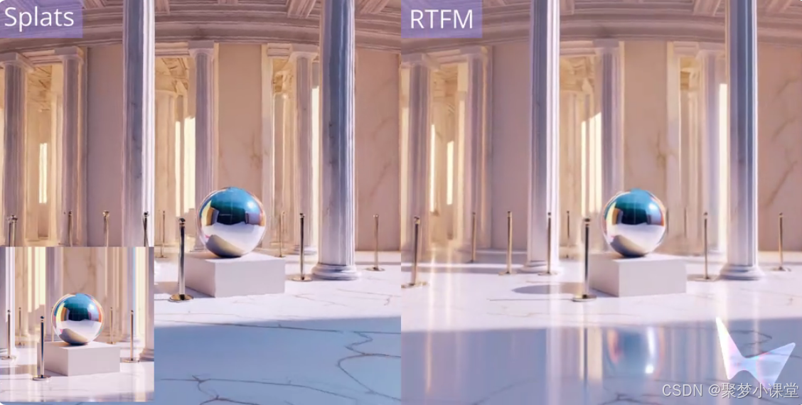 RTFM 能渲染光照、反射等复杂特效,这些能力均通过数据端到端习得。