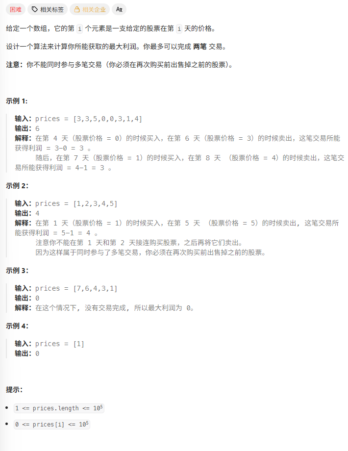 123. 买卖股票的最佳时机 III
