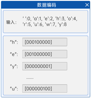 - 按照ASCII的顺序进行从0开始编号({' ': 0, 'a': 1, 'e': 2, 'h': 3, 'o': 4, 'r': 5, 'u': 6, 'w': 7, 'y': 8})