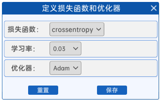 从上一个组件的图中可以看出,使用的是交叉熵损失函数,确认学习率和优化器Adam。