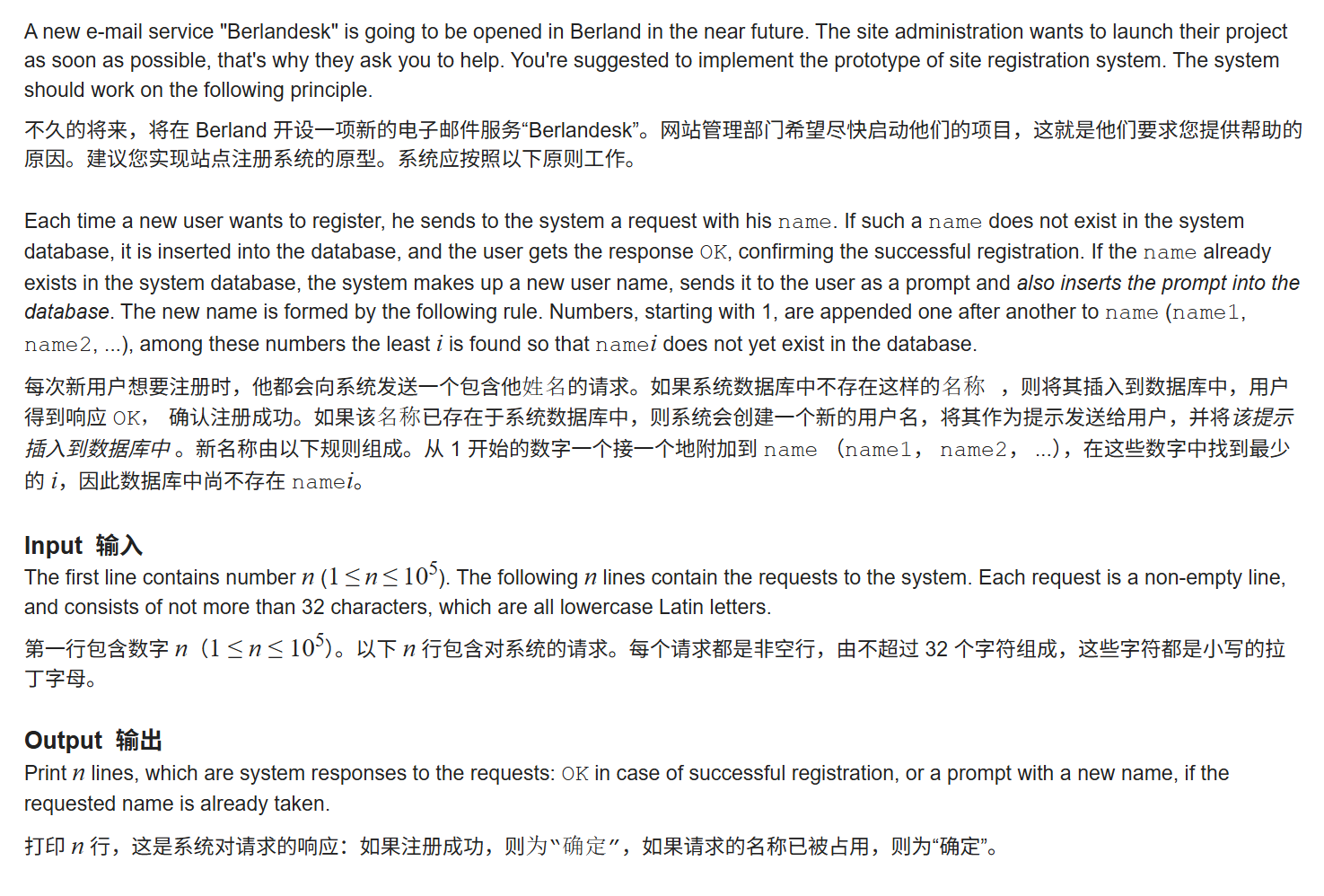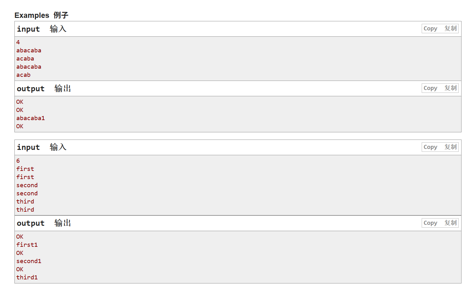 那么,这题的题目意思就分析完了,是不是很简单,这功能也挺像有些古早游戏取名重复时候在原名字后面接数字提示的那个功能